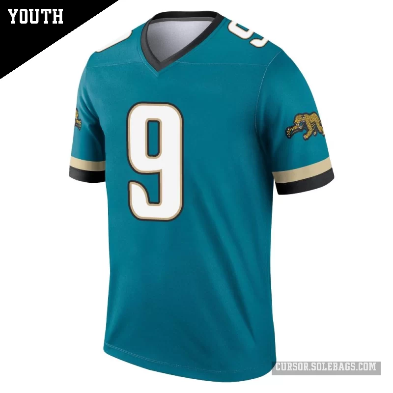 Give young fans a lightweight way to support the Jaguars with this Youth Jacksonville Jaguars #9 Logan Cooke Teal Legend Prowler Throwback Jersey. Soft, easy to move in, and full of team pride, it's perfect for active kids on game day and beyond.
