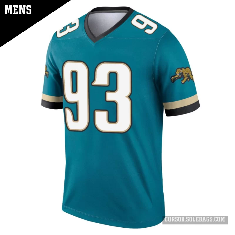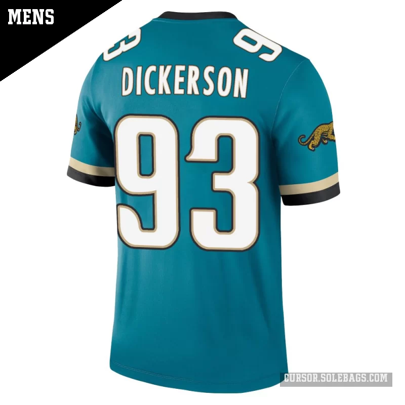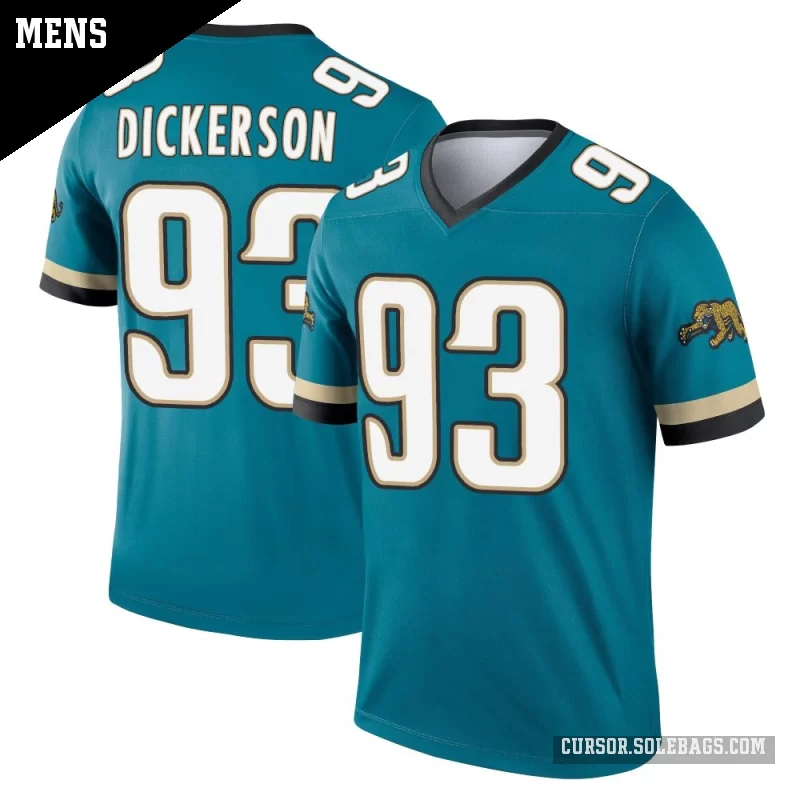 Keep cool and comfortable while backing the Jacksonville Jaguars in this Men's Jacksonville Jaguars #93 Matt Dickerson Teal Legend Prowler Throwback Jersey. Lightweight, breathable fabric and bold player graphics make it perfect for warmer game days and everyday wear.