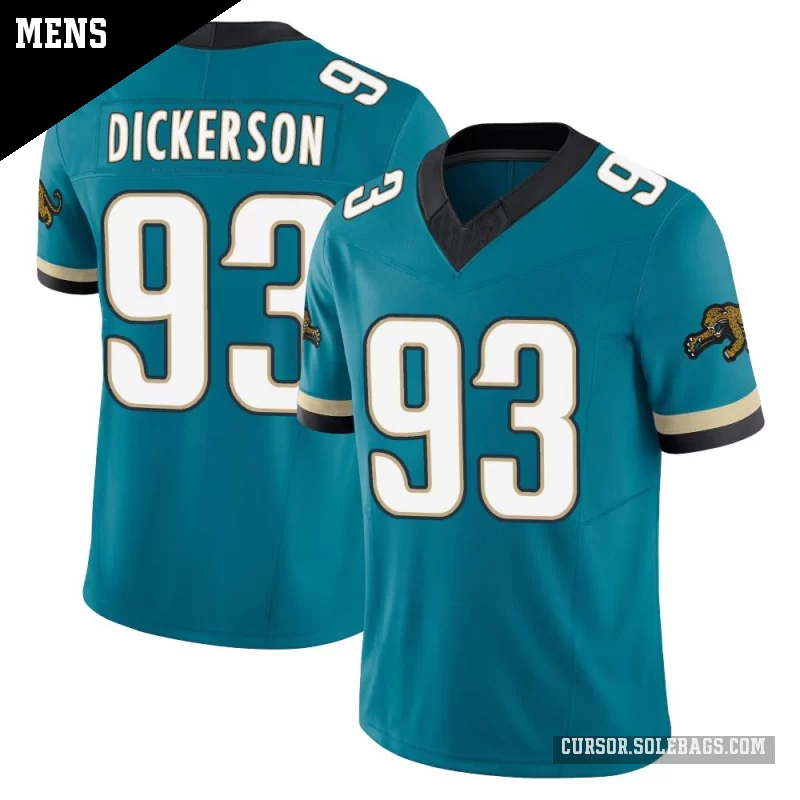 Step up your fan gear with this Men's Jacksonville Jaguars #93 Matt Dickerson Teal Limited Prowler Throwback Vapor F.U.S.E. Jersey. Featuring premium fabrics, stitched details, and a tailored fit, it delivers a more authentic on-field look for serious supporters.