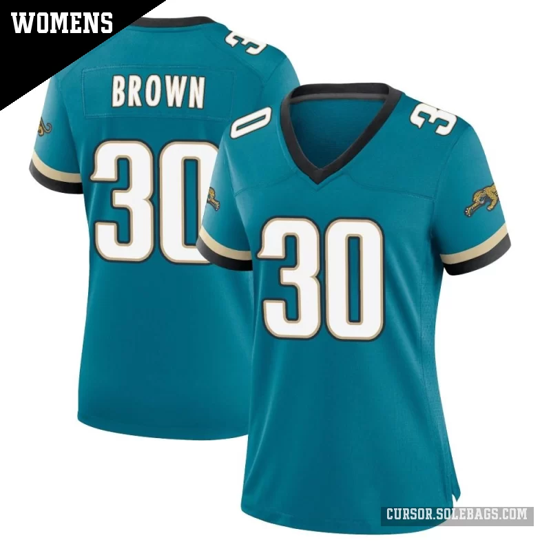 - Women's Jacksonville Jaguars #30 Montaric Brown Teal Game Prowler Throwback Jersey