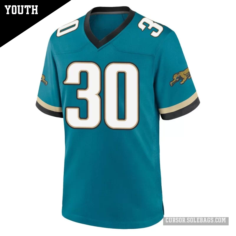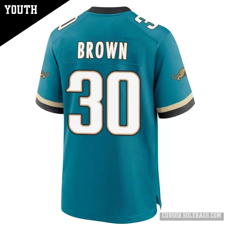 - Youth Jacksonville Jaguars #30 Montaric Brown Teal Game Prowler Throwback Jersey