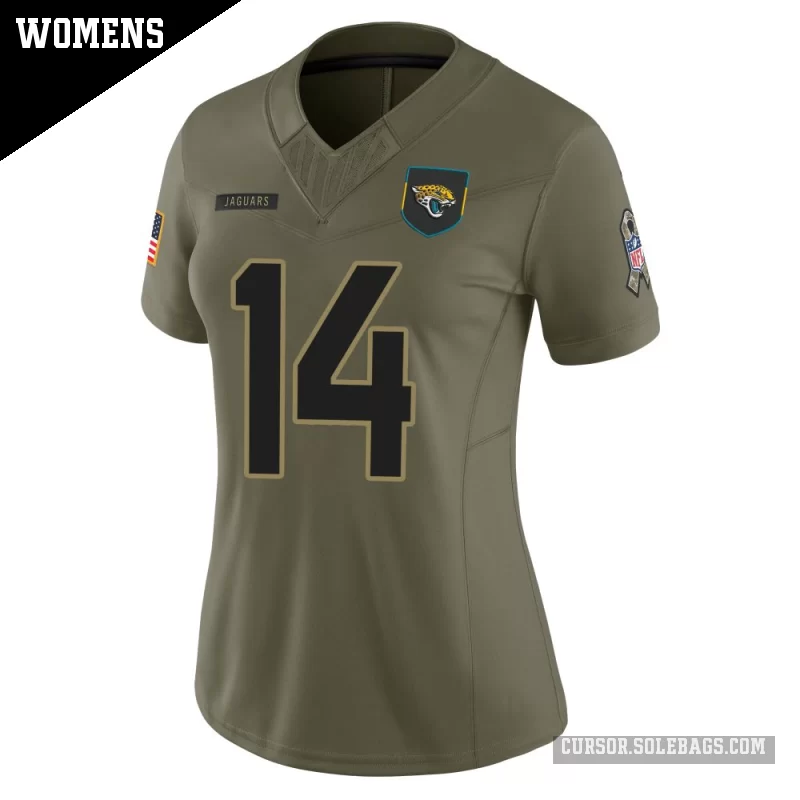 - Women's Jacksonville Jaguars #14 Nick Mullens Olive Limited 2025 Salute to Service Jersey