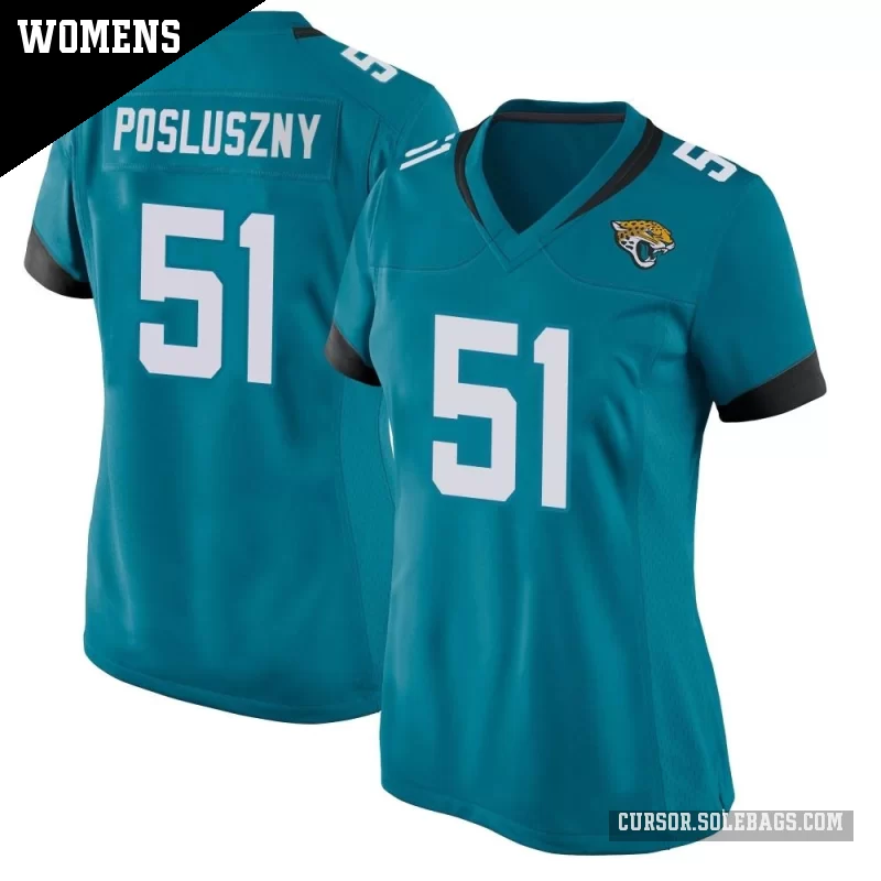 Bring true fan energy to every game with this Women's Jacksonville Jaguars #51 Paul Posluszny Teal Game Jersey. Designed for comfort and a flattering silhouette, it's an easy go-to for any game-day outfit.