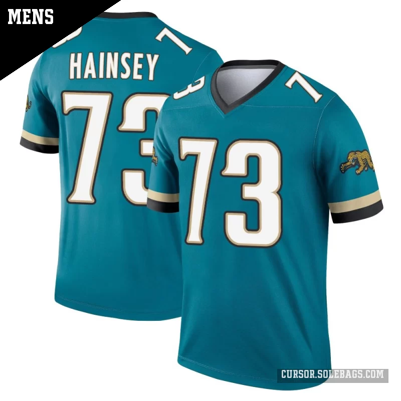 Keep cool and comfortable while backing the Jacksonville Jaguars in this Men's Jacksonville Jaguars #73 Robert Hainsey Teal Legend Prowler Throwback Jersey. Lightweight, breathable fabric and bold player graphics make it perfect for warmer game days and everyday wear.