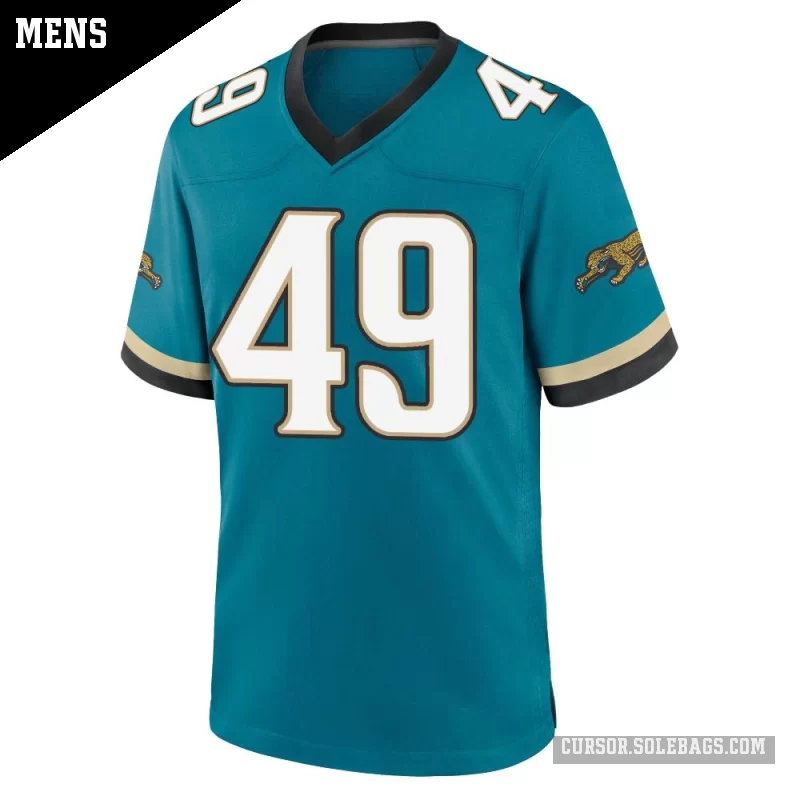 Suit up like a fan favorite in this Men's Jacksonville Jaguars #49 Shawn Bowman Teal Game Prowler Throwback Jersey. Featuring graphics and a comfortable everyday fit, it's perfect for cheering in the stands or watching from home.