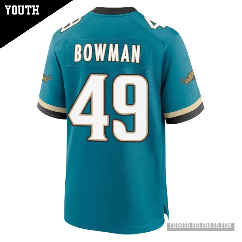 - Youth Jacksonville Jaguars #49 Shawn Bowman Teal Game Prowler Throwback Jersey