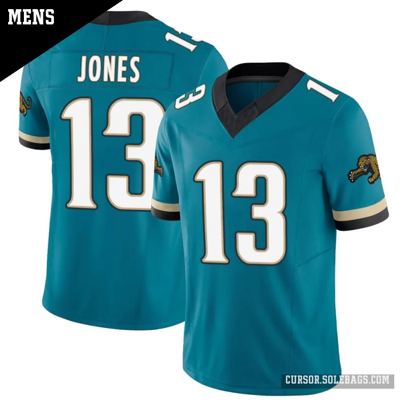 Step up your fan gear with this Men's Jacksonville Jaguars #13 Tim Jones Teal Limited Prowler Throwback Vapor F.U.S.E. Jersey. Featuring premium fabrics, stitched details, and a tailored fit, it delivers a more authentic on-field look for serious supporters.
