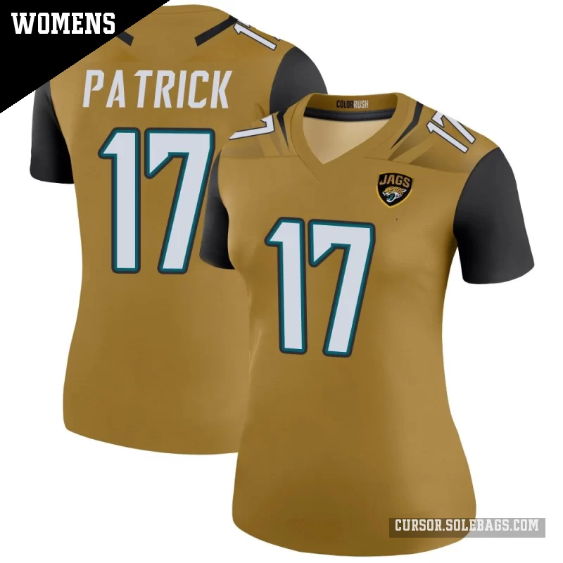 - Women's Jacksonville Jaguars #17 Tim Patrick Gold Legend Color Rush Bold Jersey