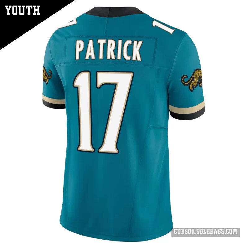 - Youth Jacksonville Jaguars #17 Tim Patrick Teal Limited Prowler Throwback Vapor F.U.S.E. Jersey