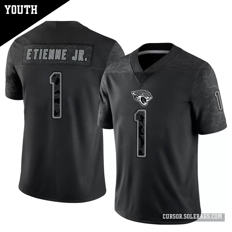 - Youth Jacksonville Jaguars #1 Travis Etienne Jr. Black Limited Reflective Jersey