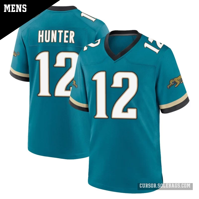 Suit up like a fan favorite in this Men's Jacksonville Jaguars #12 Travis Hunter Teal Game Prowler Throwback Jersey. Featuring graphics and a comfortable everyday fit, it's perfect for cheering in the stands or watching from home.