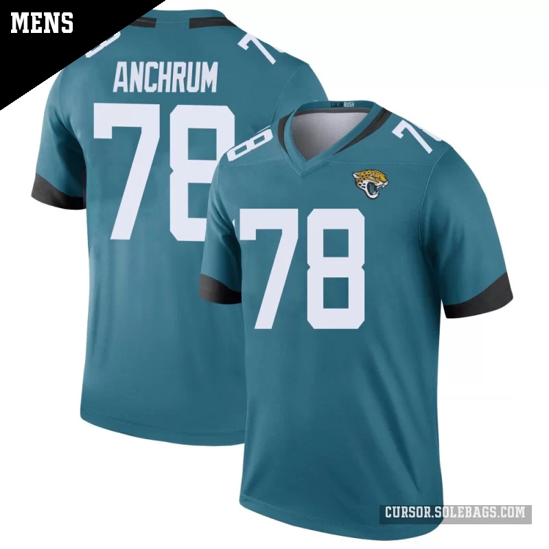 Keep cool and comfortable while backing the Jacksonville Jaguars in this Men's Jacksonville Jaguars #78 Tremayne Anchrum Teal Legend Color Rush Jersey. Lightweight, breathable fabric and bold player graphics make it perfect for warmer game days and everyday wear.
