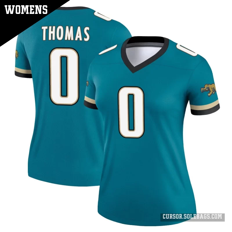 Stay light, cool, and game-ready in this Women's Jacksonville Jaguars #0 Trevian Thomas Teal Legend Prowler Throwback Jersey. With a comfortable fit and crisp player details, it's ideal for stadium seats, watch parties, or casual outfits.