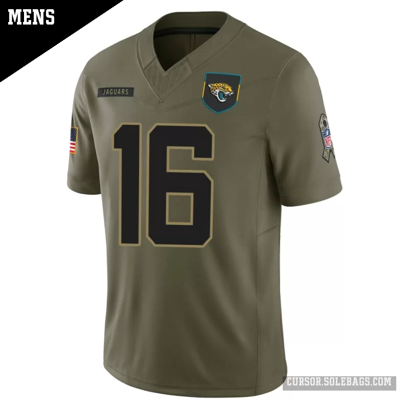 - Men's Jacksonville Jaguars #16 Trevor Lawrence Olive Limited 2025 Salute to Service Jersey