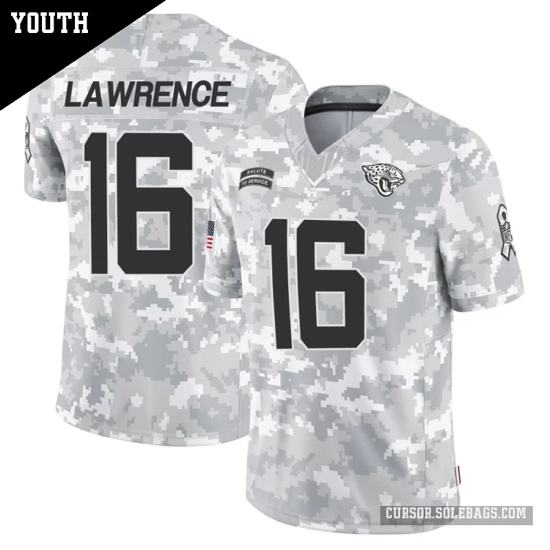 - Youth Jacksonville Jaguars #16 Trevor Lawrence Arctic Camo Limited 2024 Salute to Service Jersey