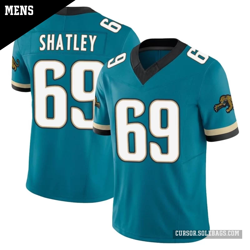 Step up your fan gear with this Men's Jacksonville Jaguars #69 Tyler Shatley Teal Limited Prowler Throwback Vapor F.U.S.E. Jersey. Featuring premium fabrics, stitched details, and a tailored fit, it delivers a more authentic on-field look for serious supporters.