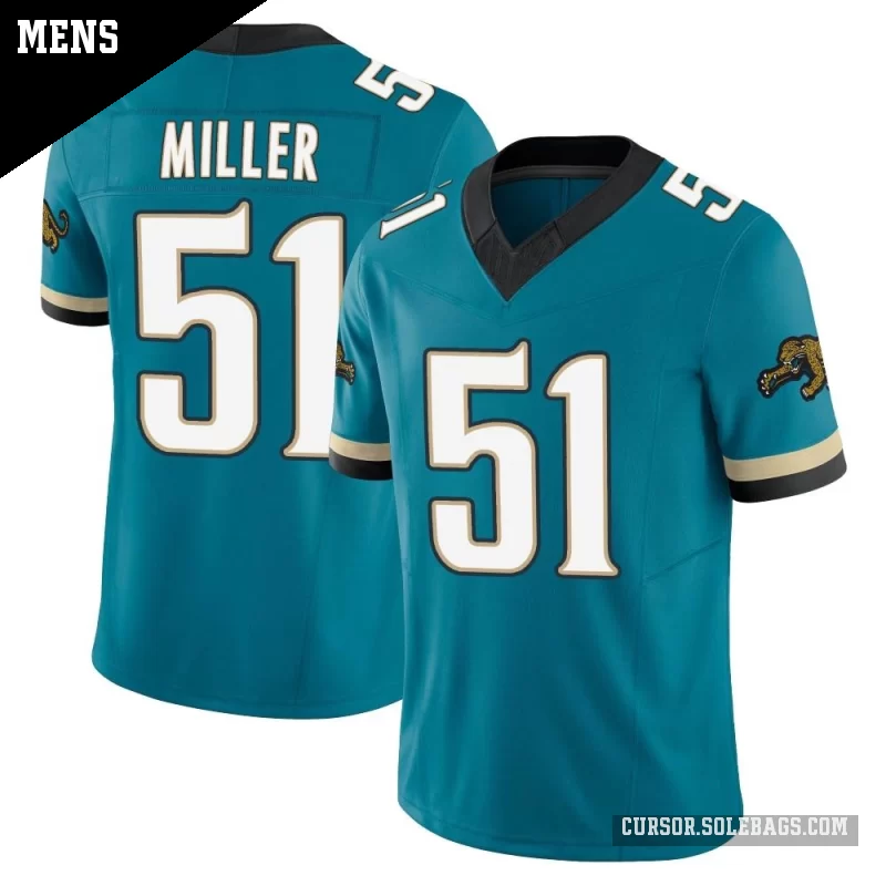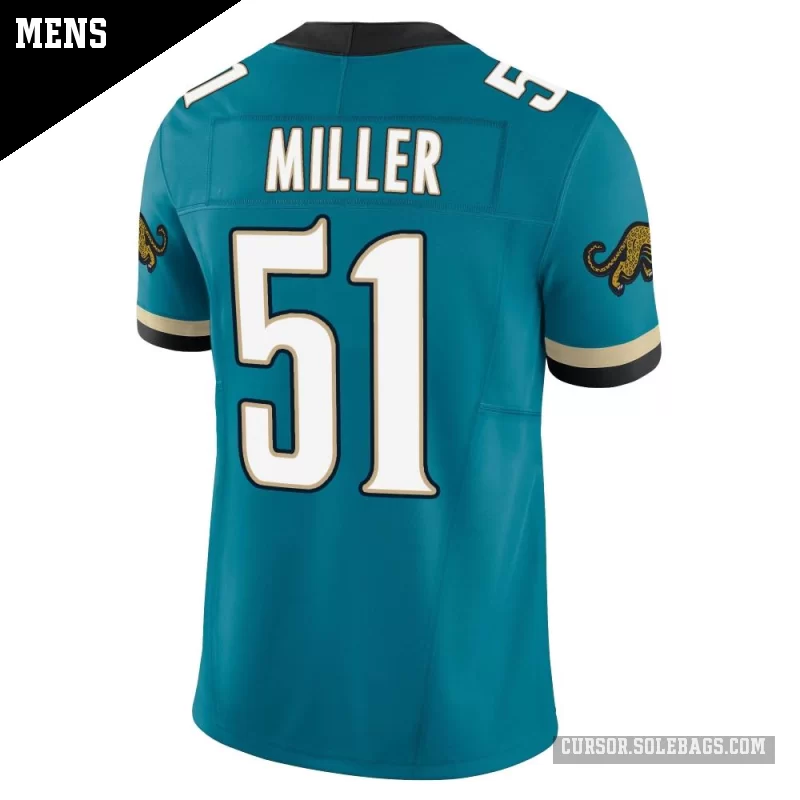 - Men's Jacksonville Jaguars #51 Ventrell Miller Teal Limited Prowler Throwback Vapor F.U.S.E. Jersey