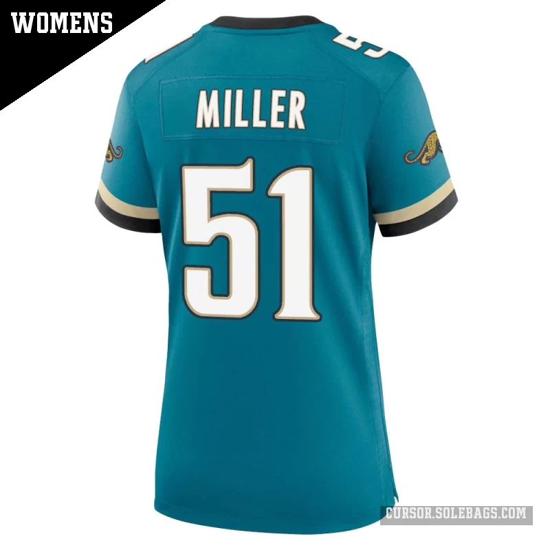- Women's Jacksonville Jaguars #51 Ventrell Miller Teal Game Prowler Throwback Jersey