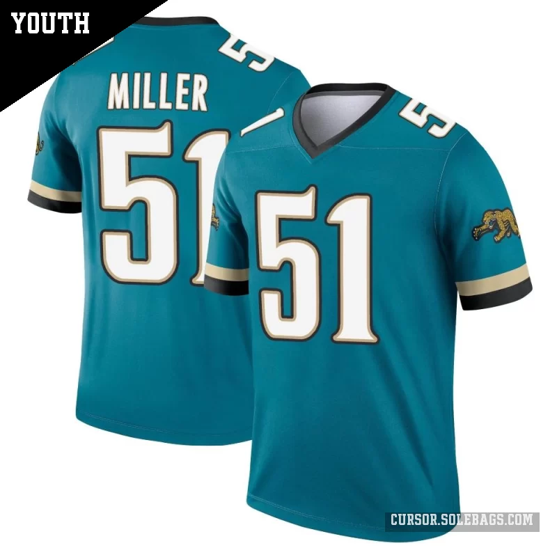 - Youth Jacksonville Jaguars #51 Ventrell Miller Teal Legend Prowler Throwback Jersey