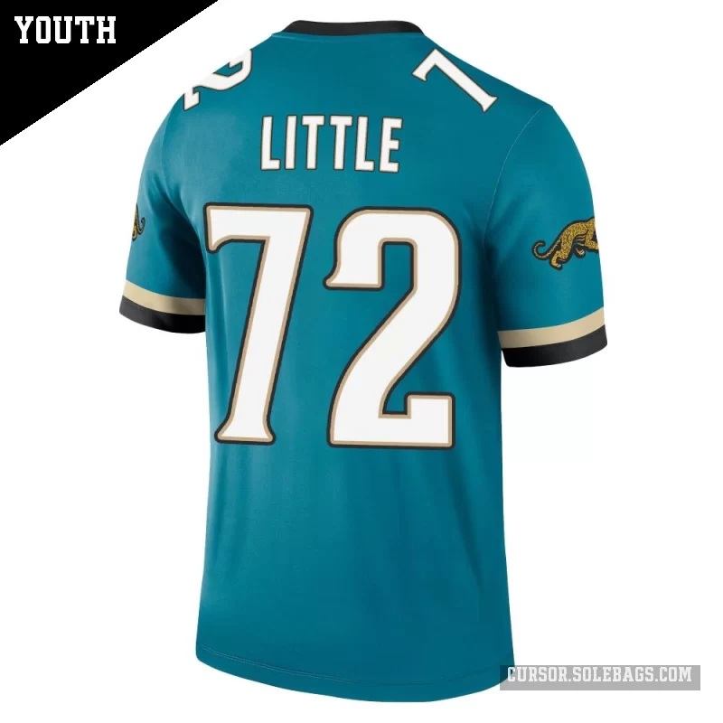Give young fans a lightweight way to support the Jaguars with this Youth Jacksonville Jaguars #72 Walker Little Teal Legend Prowler Throwback Jersey. Soft, easy to move in, and full of team pride, it's perfect for active kids on game day and beyond.