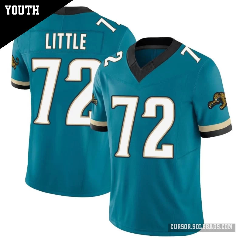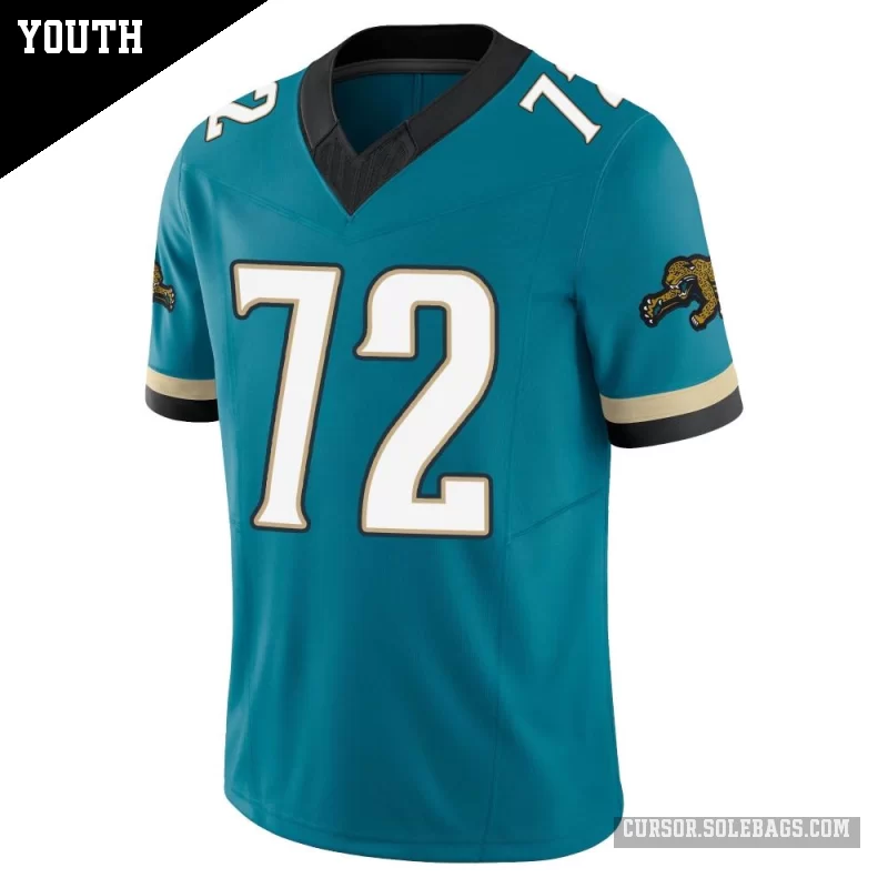 Treat young fans to a more premium feel with this Youth Jacksonville Jaguars #72 Walker Little Teal Limited Prowler Throwback Vapor F.U.S.E. Jersey. Enhanced details and a comfortable fit make it a standout choice for special games, photos, and gifts.