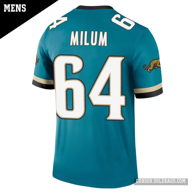 Keep cool and comfortable while backing the Jacksonville Jaguars in this Men's Jacksonville Jaguars #64 Wyatt Milum Teal Legend Prowler Throwback Jersey. Lightweight, breathable fabric and bold player graphics make it perfect for warmer game days and everyday wear.