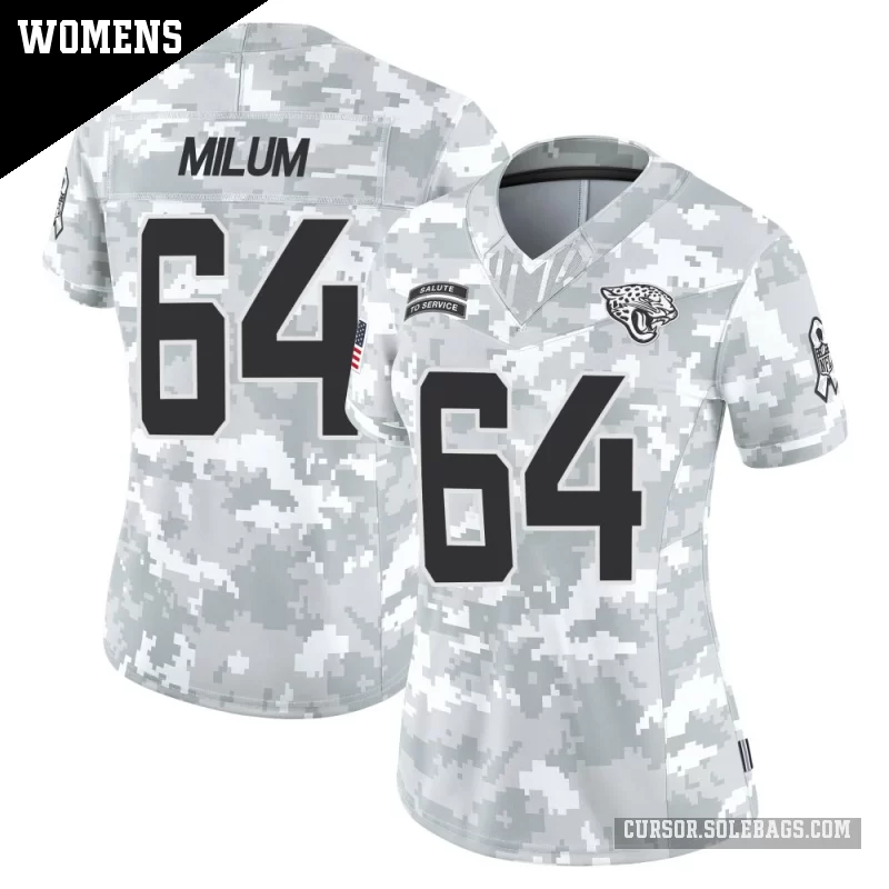 - Women's Jacksonville Jaguars #64 Wyatt Milum Arctic Camo Limited 2024 Salute to Service Jersey