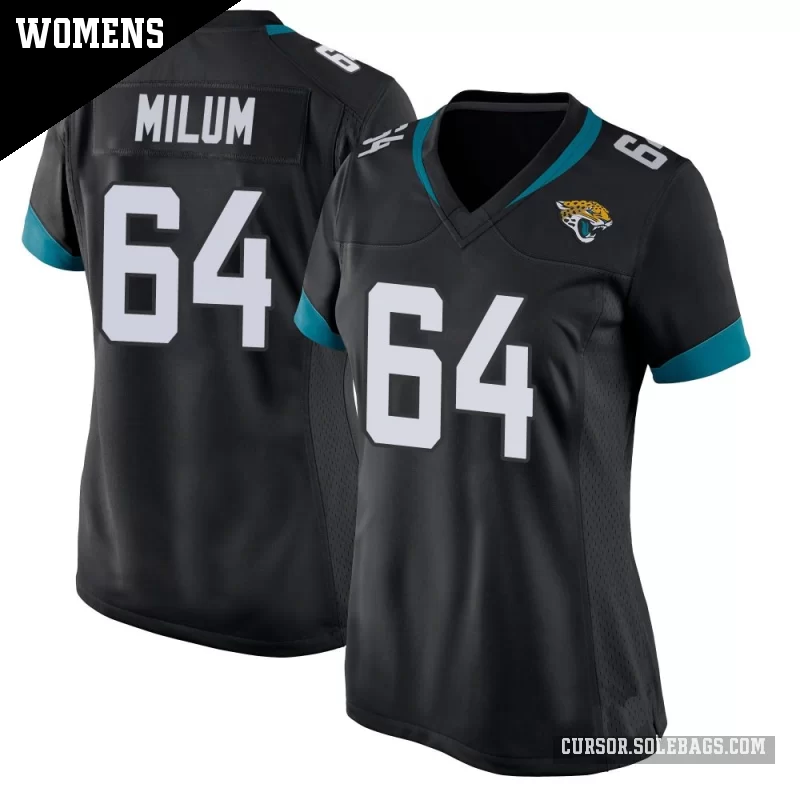 - Women's Jacksonville Jaguars #64 Wyatt Milum Black Game Jersey