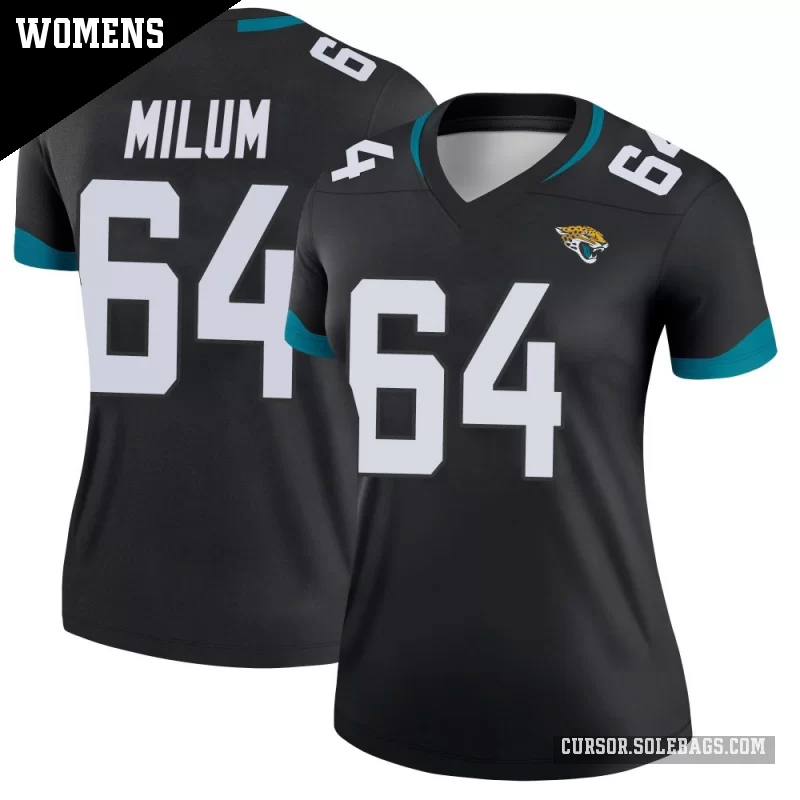 - Women's Jacksonville Jaguars #64 Wyatt Milum Black Legend Jersey