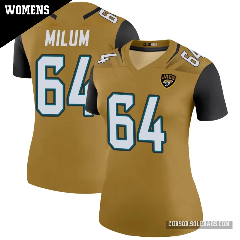 - Women's Jacksonville Jaguars #64 Wyatt Milum Gold Legend Color Rush Bold Jersey