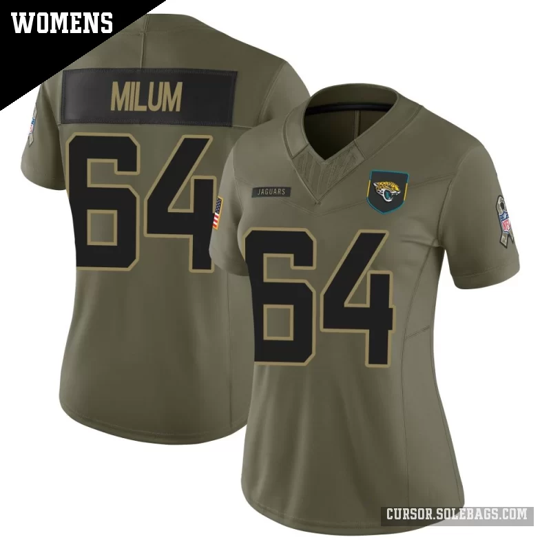 - Women's Jacksonville Jaguars #64 Wyatt Milum Olive Limited 2025 Salute to Service Jersey
