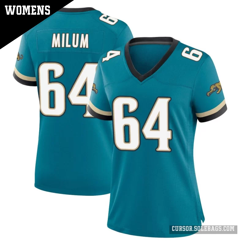 - Women's Jacksonville Jaguars #64 Wyatt Milum Teal Game Prowler Throwback Jersey