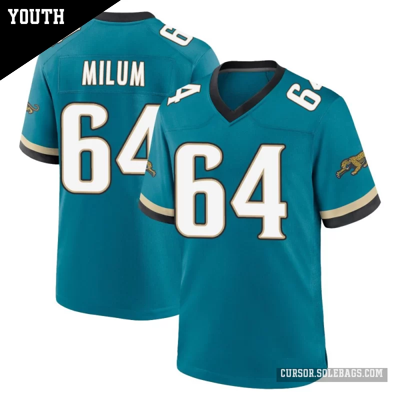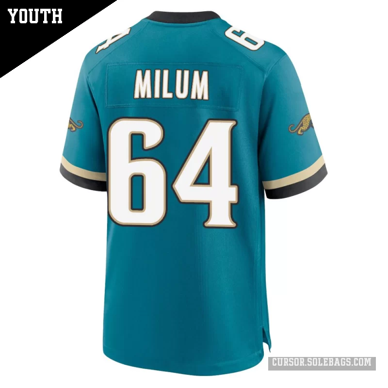 Let young fans feel part of the team with this Youth Jacksonville Jaguars #64 Wyatt Milum Teal Game Prowler Throwback Jersey. Durable, comfortable, and full of team spirit, it's great for school, backyard play, and every big game.