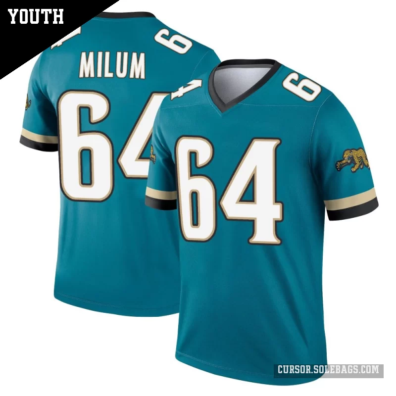 - Youth Jacksonville Jaguars #64 Wyatt Milum Teal Legend Prowler Throwback Jersey