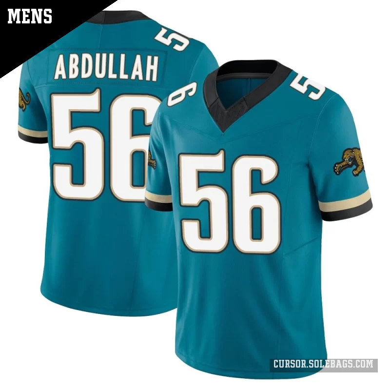 Step up your fan gear with this Men's Jacksonville Jaguars #56 Yasir Abdullah Teal Limited Prowler Throwback Vapor F.U.S.E. Jersey. Featuring premium fabrics, stitched details, and a tailored fit, it delivers a more authentic on-field look for serious supporters.