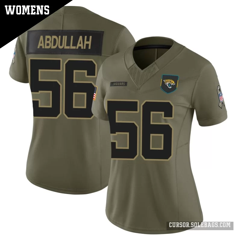 - Women's Jacksonville Jaguars #56 Yasir Abdullah Olive Limited 2025 Salute to Service Jersey