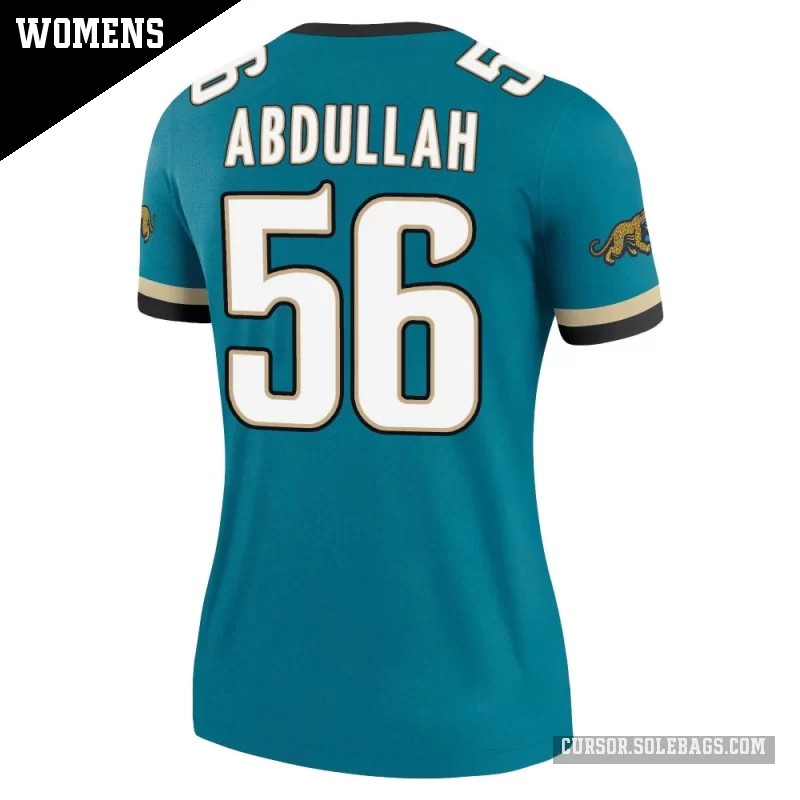 - Women's Jacksonville Jaguars #56 Yasir Abdullah Teal Legend Prowler Throwback Jersey