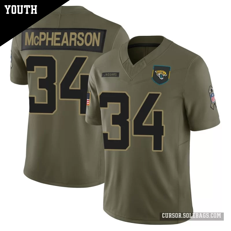 - Youth Jacksonville Jaguars #34 Zech McPhearson Olive Limited 2025 Salute to Service Jersey