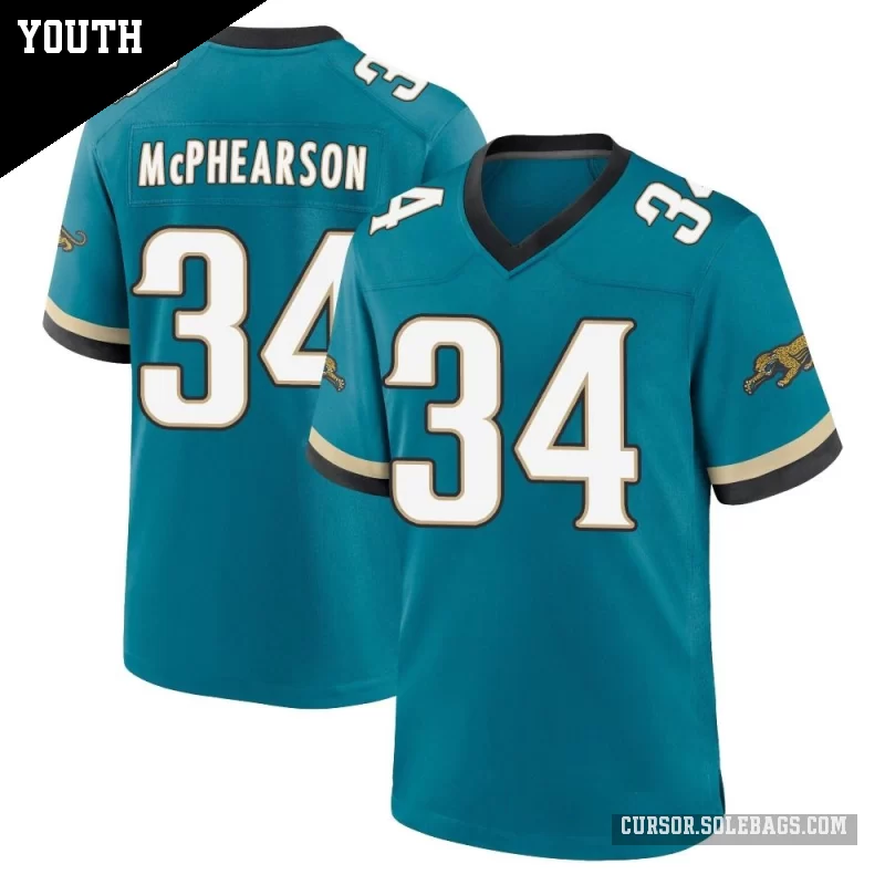 - Youth Jacksonville Jaguars #34 Zech McPhearson Teal Game Prowler Throwback Jersey
