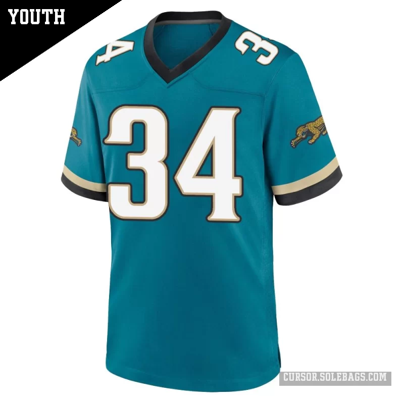 Let young fans feel part of the team with this Youth Jacksonville Jaguars #34 Zech McPhearson Teal Game Prowler Throwback Jersey. Durable, comfortable, and full of team spirit, it's great for school, backyard play, and every big game.